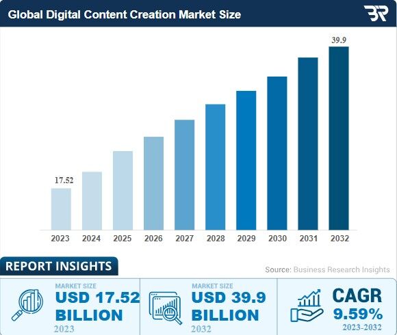 حجم بازار جهانی تولید محتوای دیجیتال در سال ۲۰۲۳ تقریباً ۱۷.۵۲ میلیارد دلار ارزش گذاری شده بود و پیش بینی میشود تا سال ۲۰۳۲ به ۳۹.۹ میلیارد دلار برسد. به عبارت دیگر پیش بینی می شود بازار جهانی تولید محتوای دیجیتال از سال ۲۰۲۳ تا ۲۰۳۲ با ثبت نرخ رشد مرکب سالانه (CAGR) حدود ۹.۵۹ درصد به حدود ۴۰ میلیارد دلار برسد.