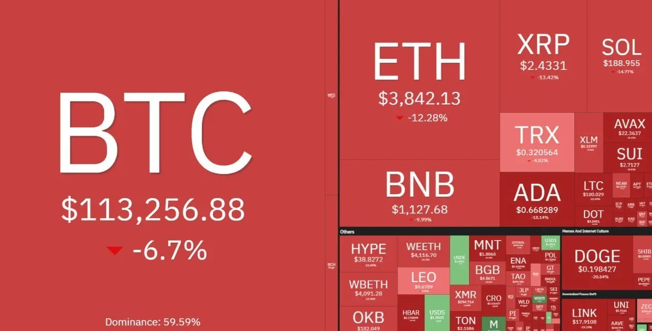 اتریوم نیز با افت حدود ۱۹ درصدی در محدوده بحرانی قرار گرفته و بسیاری از آلتکوینها بین ۳۰ تا ۶۰ درصد سقوط را تجربه کردهاند. از جمله، ریپل (XRP) با ریزش ۲۵ درصدی، سولانا ۱۸ درصد، بایننسکوین ۲۰ درصد و دوجکوین بیش از ۳۷ درصد کاهش ارزش داشتهاند.