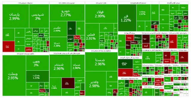 شاخص کل بورس که روز کاری گذشته ۲.۳۶ درصد رشد کرده بود، امروز نیز ۲.۱۷ درصد مثبت شد.