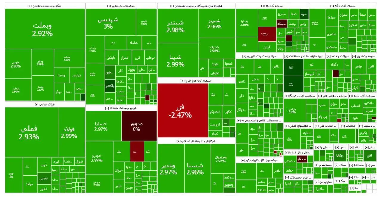 در حالی که شاخص کل بورس روز گذشته ۱.۴ درصد افت کرده بود، امروز ۲.۵ درصد رشد کرد.