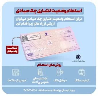 بانک مرکزی روشهای استعلام وضعیت اعتباری چکهای صیادی را اعلام کرد. مشتریان شبکه بانکی میتوانند با ارسال شناسه ۱۶ رقمی چک به سامانه پیامکی ۷۰۱۷۰۱ از تعداد و مبلغ چکهای برگشتی صادرکننده مطلع شوند و در صورت نیاز، نسبت به رفع سوء اثر چک اقدام کنند.