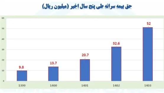 براساس گزارش اخیر بیمه مرکزی از شاخصهای کلان صنعت بیمه، سال گذشته (۱۴۰۳) سرانه حق بیمه به پنج میلیون و ۲۱۰ هزار تومان رسید و ضریب نفوذ بیمه از ۱.۹ درصد به ۲.۳ درصد رسیده است.