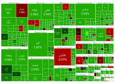 شاخص کل بورس که روز کاری گذشته ۲.۰۴ درصد رشد کرده بود، امروز نیز ۲.۳۲ درصد مثبت شد.