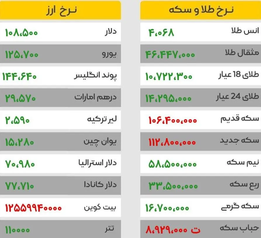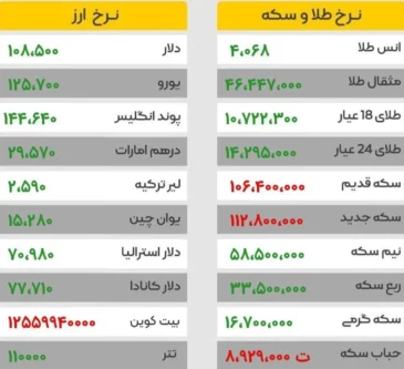 قیمت طلا،سکه وارز امروز دوشنبه ۵ آبان ماه