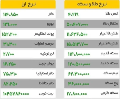 قیمت طلا،سکه وارز امروز شنبه ۸ آذر