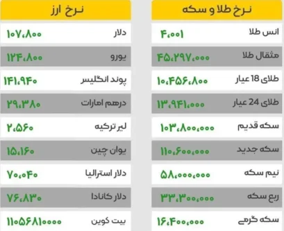 قیمت طلا،سکه وارز امروز یکشنبه ۱۸ آبان ماه