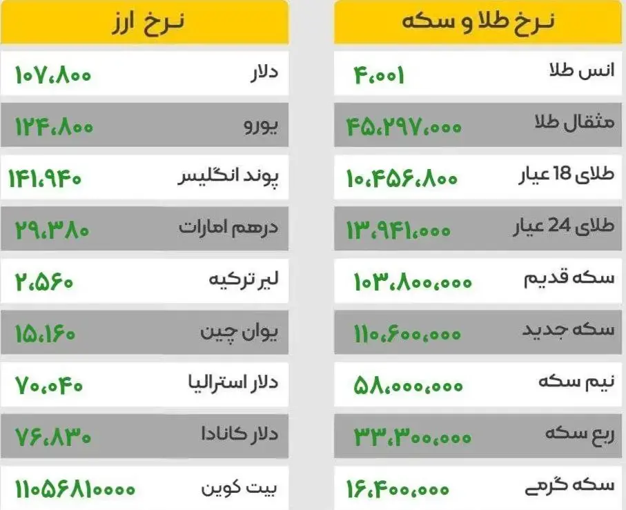 قیمت طلا،سکه وارز امروز یکشنبه ۱۸ آبان ماه