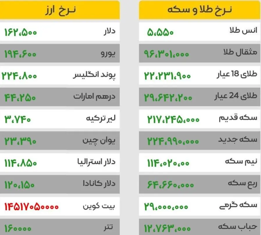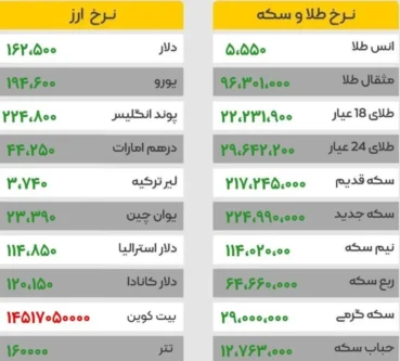 هر گرم طلا نیز به ۲۲ میلیون و ۲۳۱ هزار و ۹۰۰ تومان در شرایط کنونی رسیده است.