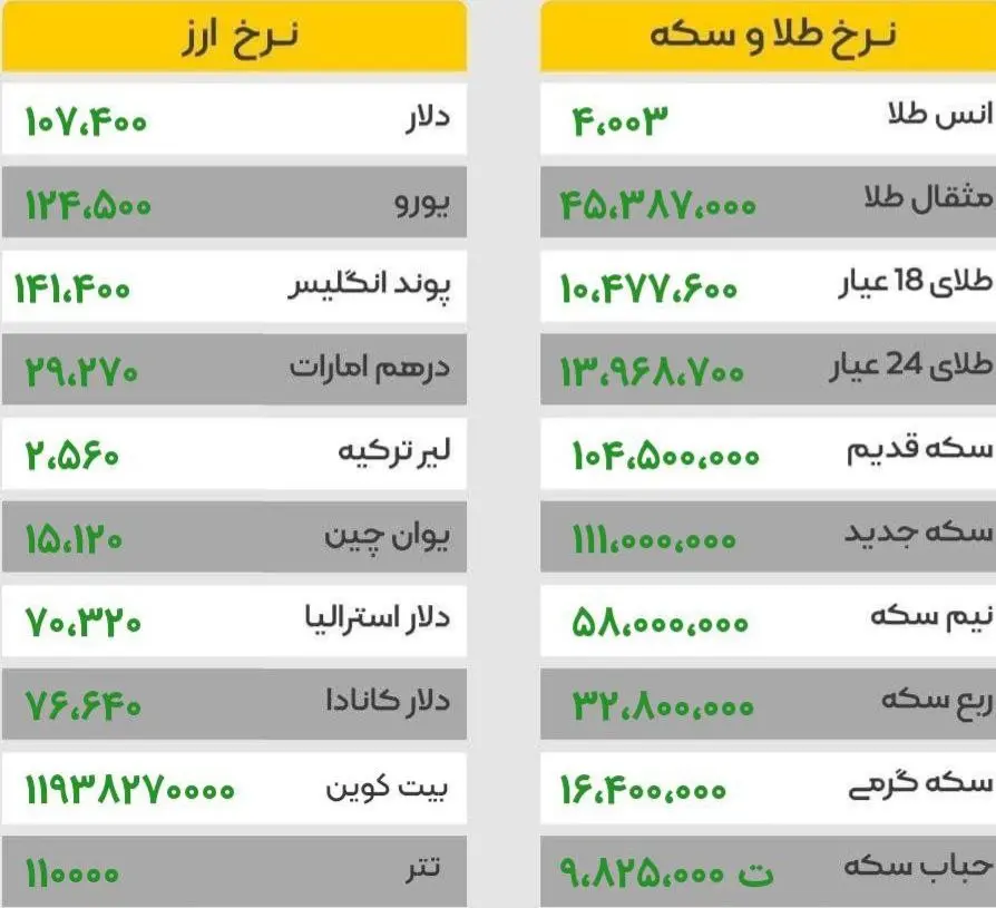 قیمت طلا وسکه در بازار تهران تغییر کرد.