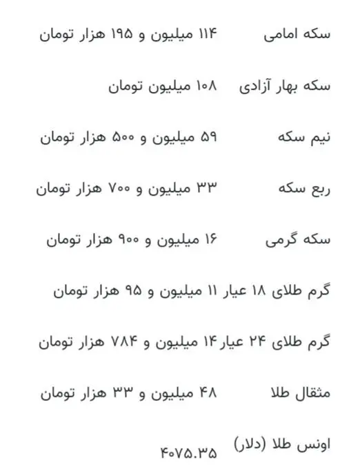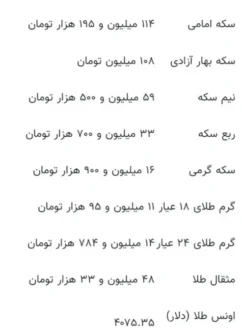به گزارش اکو بانک:هر قطعه سکه امامی با افزایش ۵۰۰ هزار تومانی، ۱۱۴ میلیون و ۱۹۵ هزار تومان شد.