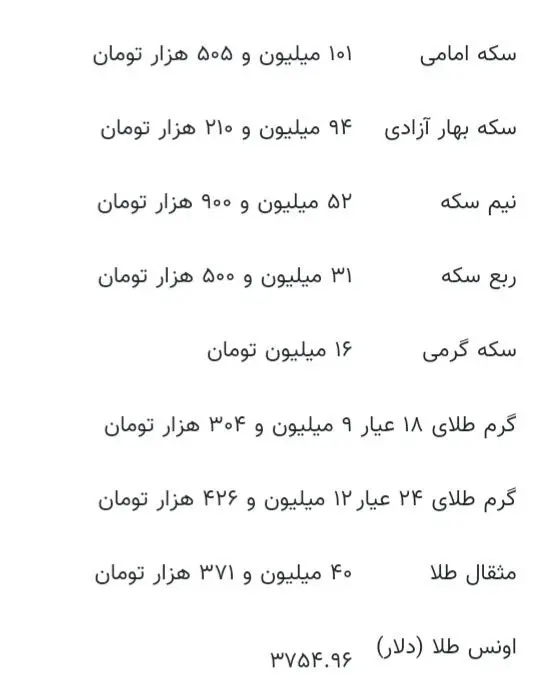 به گزارش اکو بانک:گزارشها حاکی از آن است که هر قطعه سکه امامی با افزایش ۵۱۰ هزار تومانی، ۱۰۱ میلیون و ۵۰۵ هزار تومان شد.