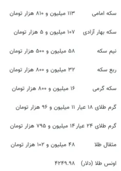 به گزارش اکو بانک:گزارشها حاکی از آن است که هر قطعه سکه امامی با افزایش یک میلیون تومانی، ۱۱۳ میلیون و ۸۱۰ هزار تومان شد.