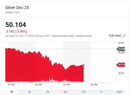 در همین حال، نقره نیز افت شدیدی را تجربه کرد و با کاهش ۵ درصدی به محدوده ۵۰ دلار در هر اونس رسید.